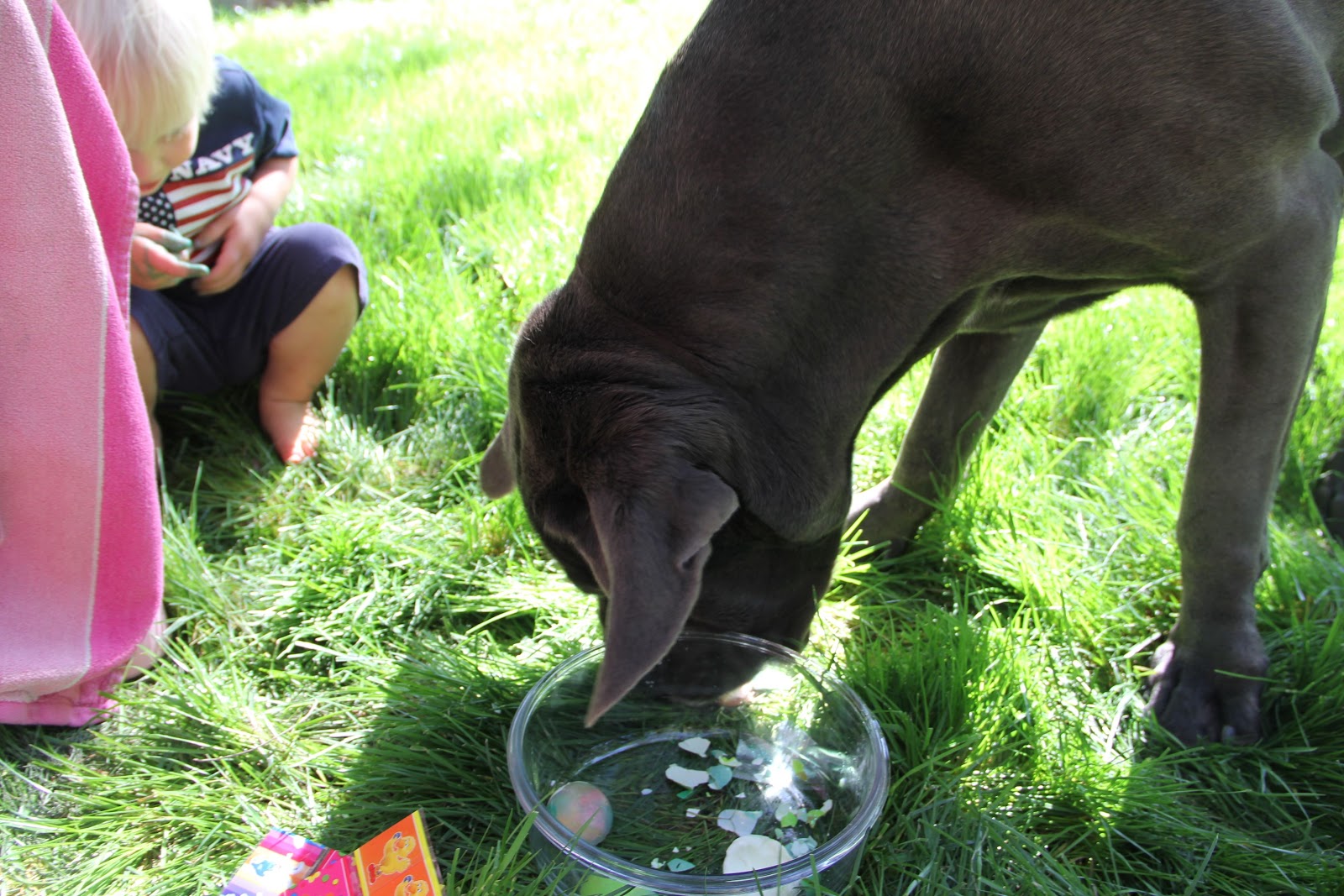 Even though I purchased an egg dying kit weeks earlier, we didn't get around to dying them until the Tuesday after Easter...